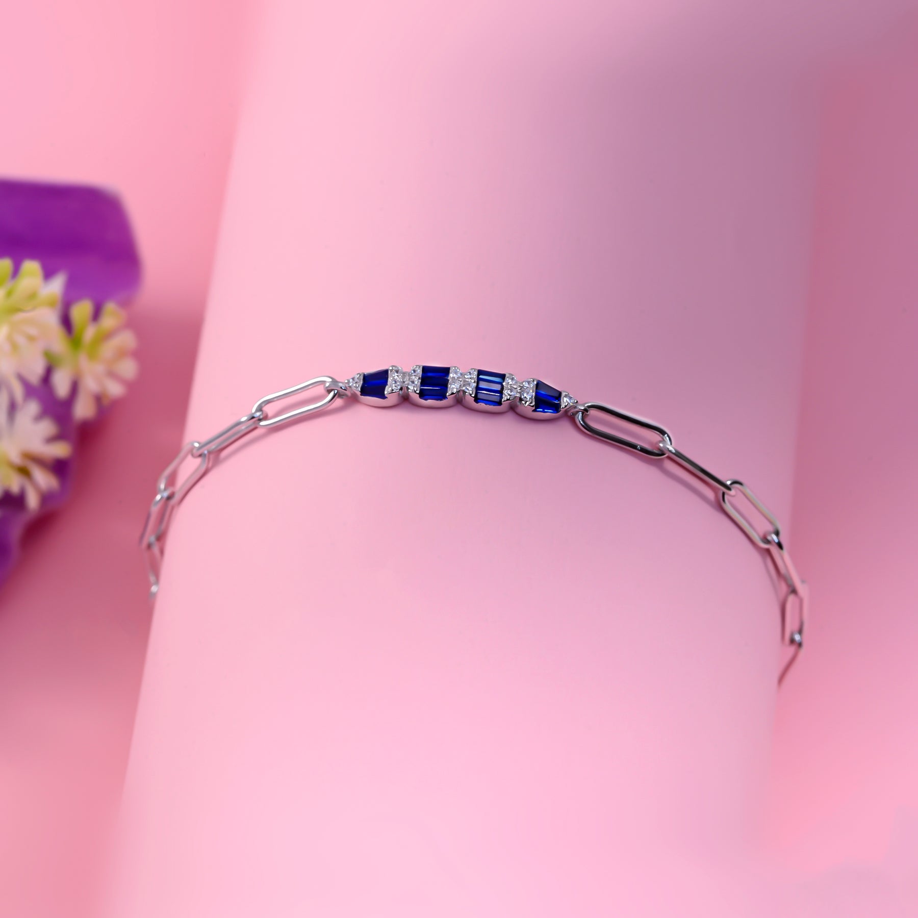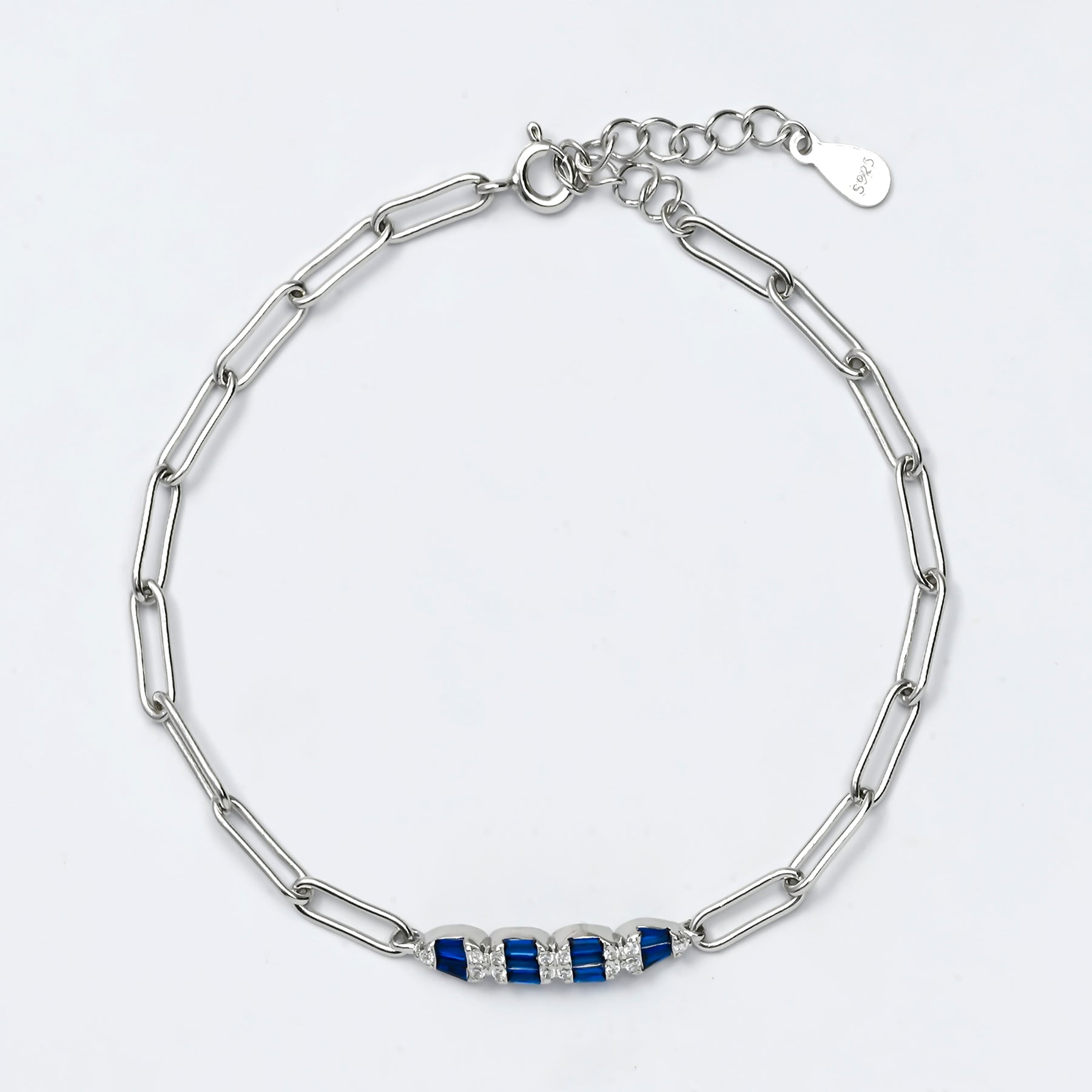 A geometric beauty—four squared shapes crafted from pairs of baguette-cut stones, set evenly along a delicate chain. Finished with an adjustable clasp for a perfect fit.