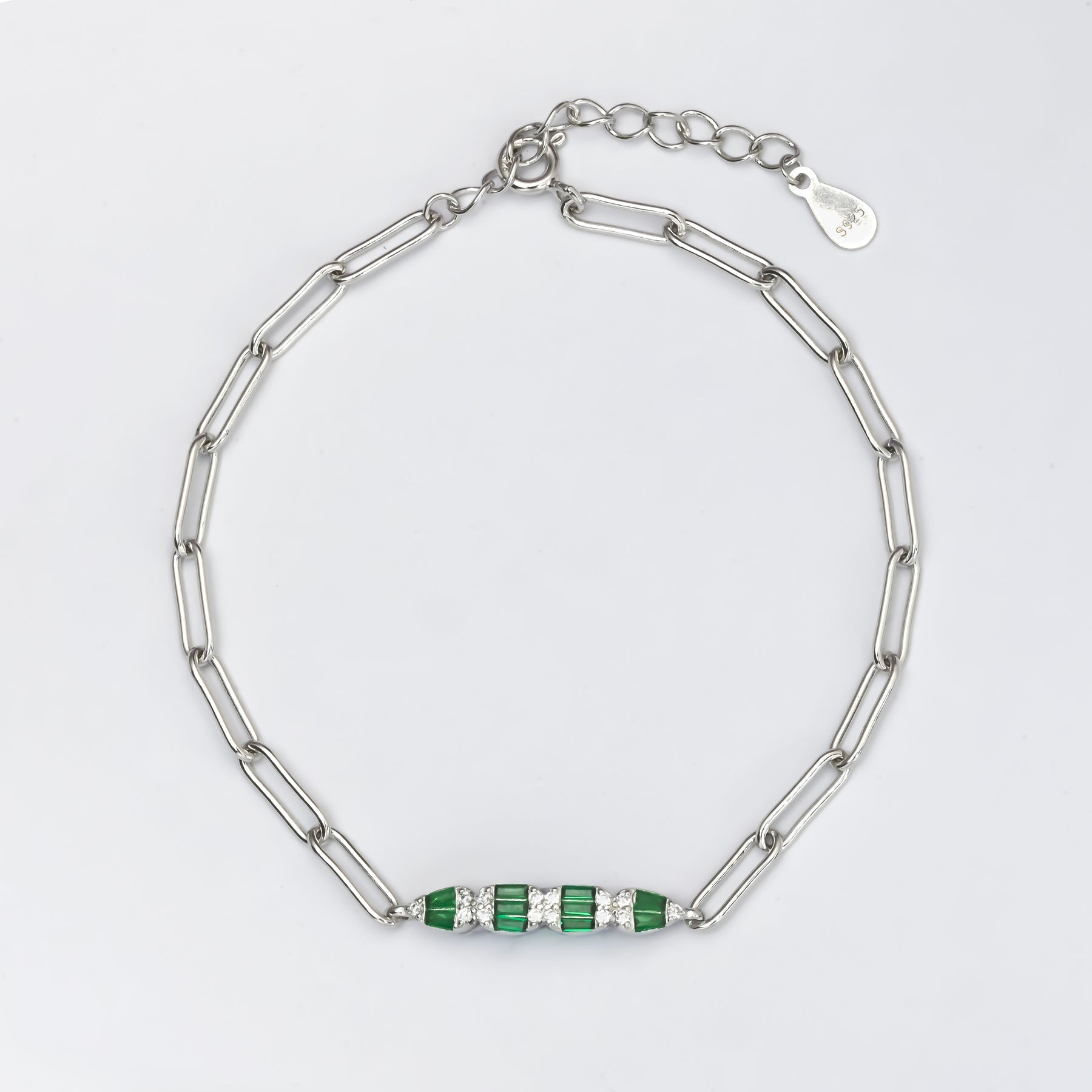 Green for growth and grace. This silver bracelet is a quiet celebration of life in full bloom—timeless, refreshing, and always elegant.