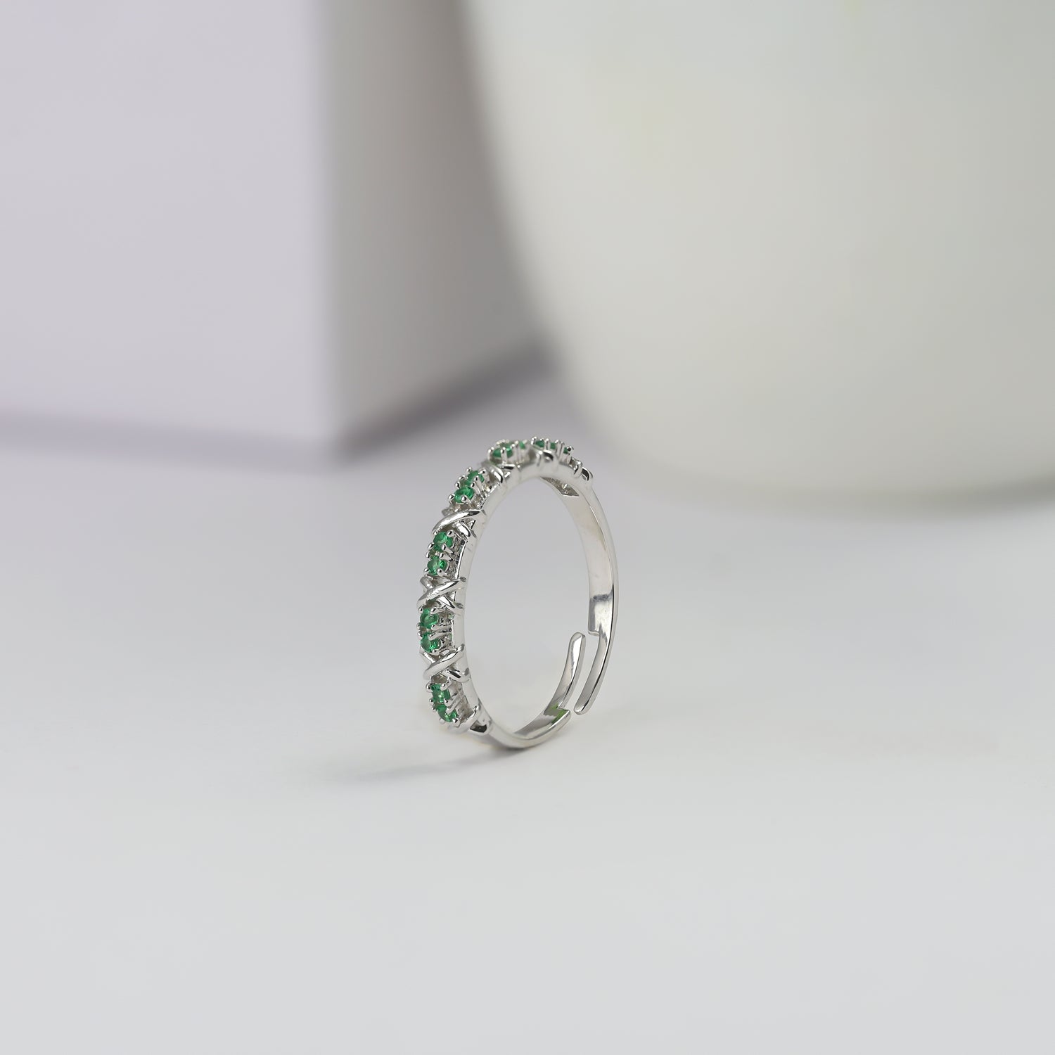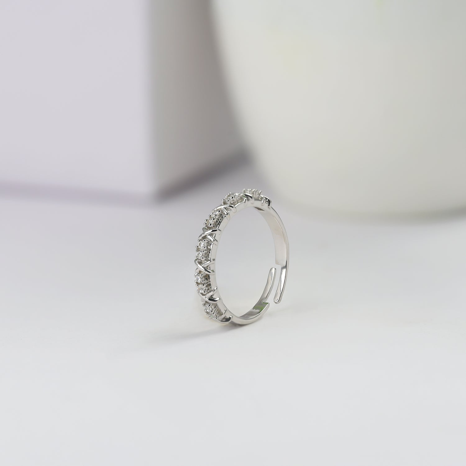 A circle of elegance on your finger. This ring embodies the harmonious beauty of the pendant and earrings, with an outer and inner circular frame adorned with sparkling stones. Just like YOU, it symbolizes endless grace and sophistication.
