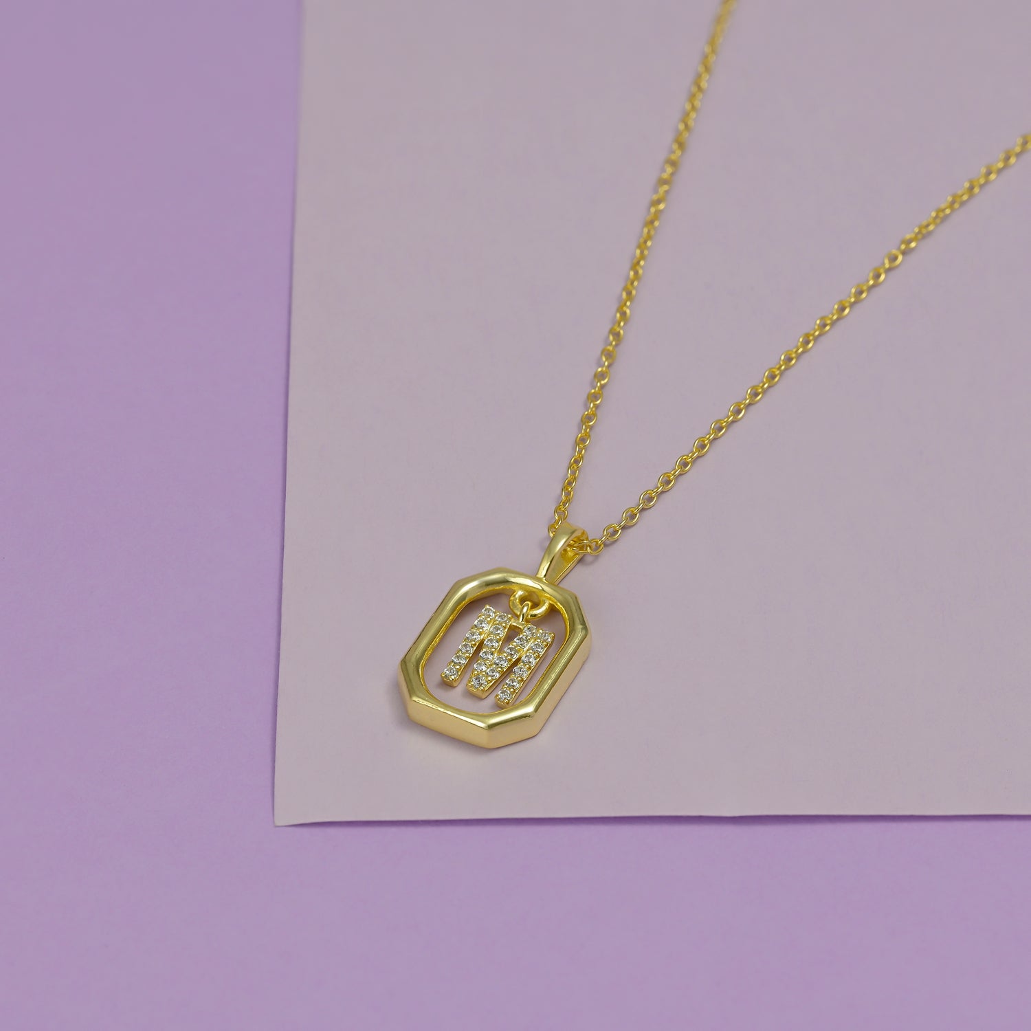 This elegant pendant features the letter M in a sleek, polished design, creating a perfect blend of minimalism and shine. A versatile piece that makes everyday elegance feel personal.
