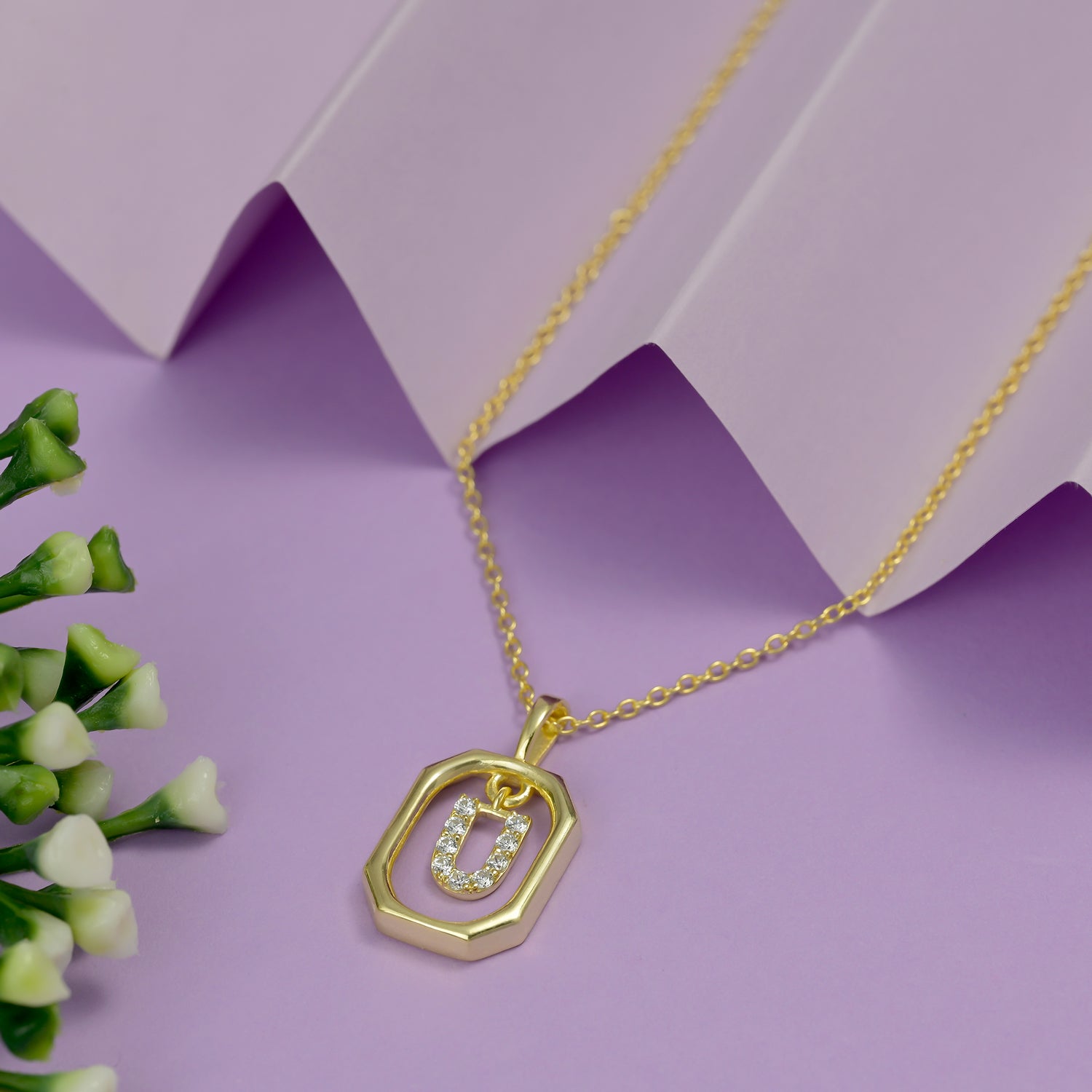 This elegant pendant features the letter U in a sleek, polished design, creating a perfect blend of minimalism and shine. A versatile piece that makes everyday elegance feel personal.