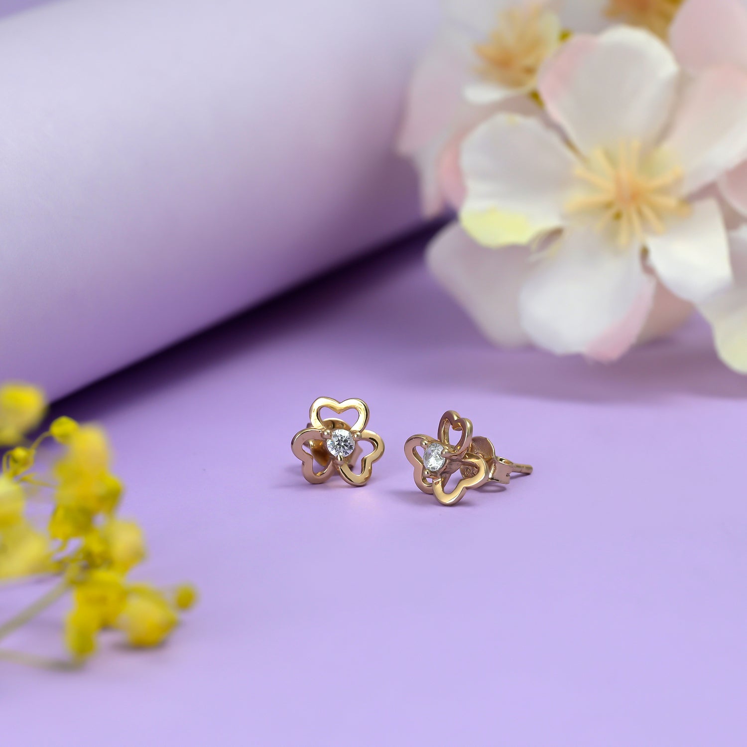 A smooth clover-shaped frame holds a brilliant stone at its center, creating a minimal yet radiant design.