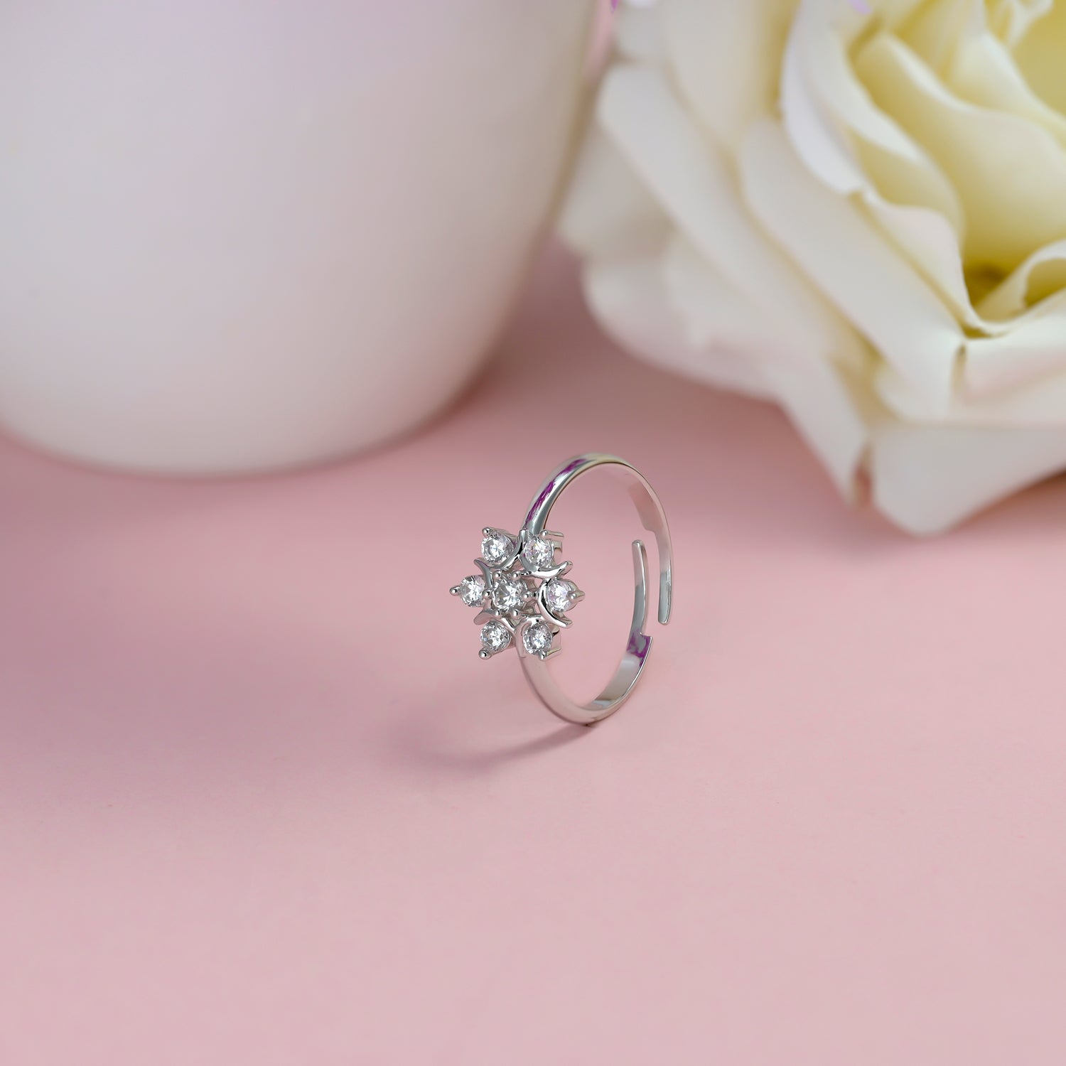 A circle of light, wrapped around your finger. This silver ring embodies balance and radiance — a quiet statement of your inner glow.